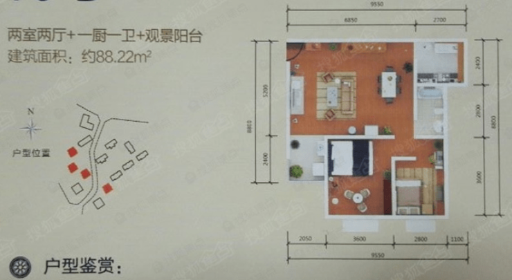 先来看一个房源较多的两室户型。