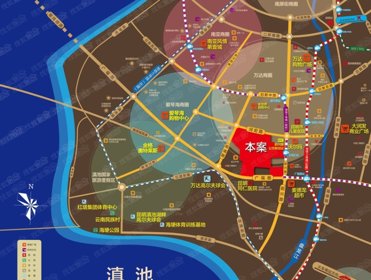 周边配套:万达广场、沃尔玛、大商汇等已形成了成熟商圈,另外昆明儿童医院、昆明同仁医院分别位于项目地东北角及西南面,昆明市南市区公交枢纽站便坐落于21号地块东北角。