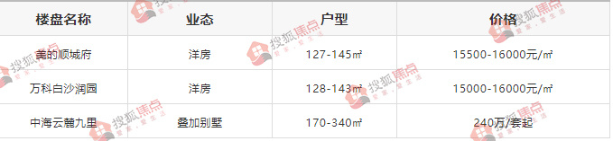 而且,据血拼姐统计,2019年年初,整个东白沙河在售楼盘只有中海云麓九里、万科白沙润园及美的顺城府在售,在售项目较少,且物业类型比较单一,多为别墅、洋房等项目。