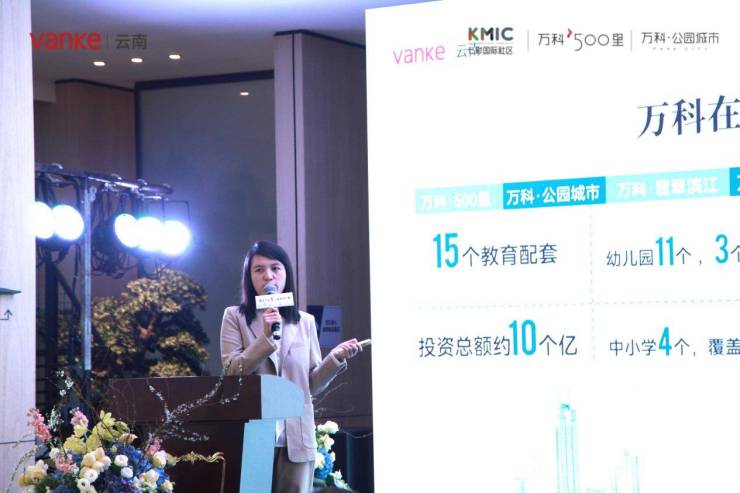 接下来,七彩国际社区营销负责人李云蕾表示教育工作的核心在于改善人居成长、成才环境。万科与云南共生长,深耕昆明南市多年,教育建设资金投入总额约10亿。七彩国际社区作为面向未来昆明的人居样本,人文与教育责任并重,给孩子创造一个优越的成长环境,始终是我们所要倾尽全力达成的目标,并在分享后对外释放了教育购房客户的补贴优惠政策。