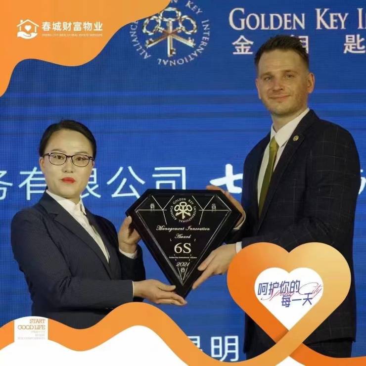 金钥匙联盟代表阐述了“用心优质,满意加惊喜”的中国金钥匙服务哲学,揭示需满足专业化、高品质服务的获奖标准,宣读联盟总部批准书,祝贺春城财富物业的加入,并为物业团队授予联盟证书、联盟牌匾、联盟勋带、金钥匙标识、联盟旗帜、联盟徽章等,现场颁发中国服务示范企业奖、联盟 6S 管理创新奖。