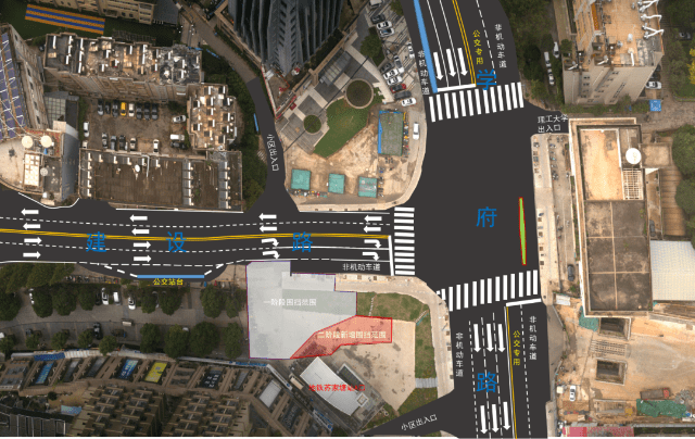第二阶段:在排名前列阶段围挡基础上进行局部外扩,围挡将延伸至4号线苏家塘站A口台阶上方,围挡周期为2022年11月21日至2023年3月31日。围挡形成后4号线苏家塘站A口南侧、西侧台阶通行不受影响,北侧台阶通行宽度由原来的3米减少至1.6米宽,围挡期间请乘车人员尽量由南台阶通行。建设路及学府路交通组织与排名前列阶段保持一致。