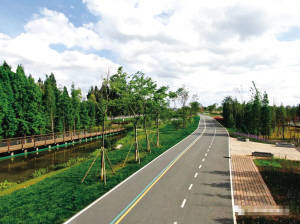 滇池绿道通过先行实施“以道守界”功能,充分发挥项目线性特征,将滇池沿线不同的生态美景、人文特色、城市风光等形态串点成面,全面推进环湖区域的整体环境提升,形成环滇池湖滨生态廊道,突出“大湿地、大生态、大景区”的特点。
