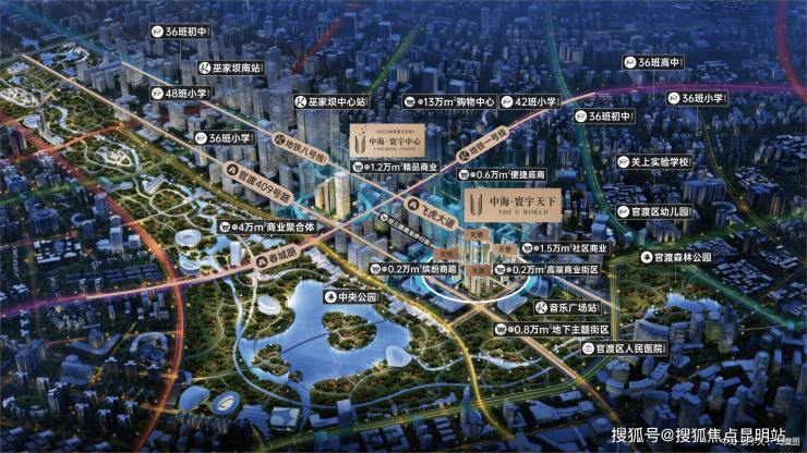 昆明中海·寰宇天下,以独到眼光占位巫家坝CBD核心,作为昆明重点开发的热土,未来城市CBD&新昆明自贸核芯,以飞虎大道为轴心,于关上老城/呈贡新区/空港经济区交汇地带,享关上商圈/公园/医教醇熟资源同时,规划有国际化的总部基地及金融中心、绿色创新的传媒中心、七彩多元的生态商业中心和高效、便捷、安全、绿色、经济的综合性交通系统。巫家坝CBD,如“心脏”般镶嵌在昆明城中。
