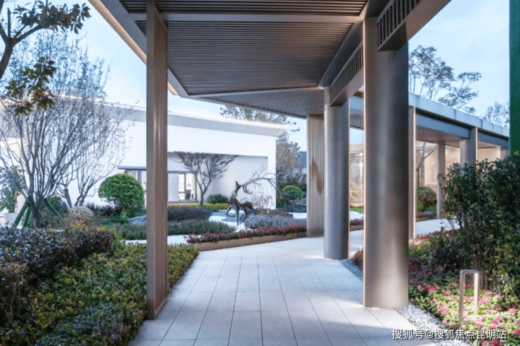 内庭与连廊形成一处框景,溪水在阳光映射下波光潋滟,大片植物与花灌乔木彼此连接交错、弥漫开来,于此满足,居民对生活品质和自我精神世界的诉求,享受优雅社区生活的同时,拥有温暖的社群交互空间,给予孩子一个在自然中生长的欢乐童年,及老人结伴休闲的丰富晚年生活。