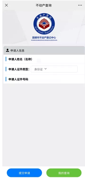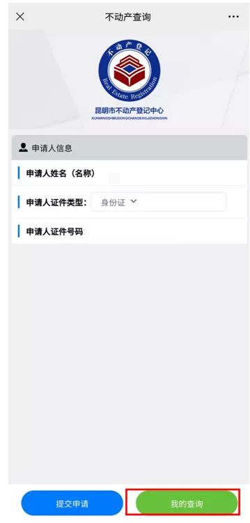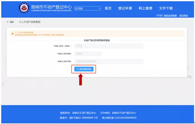 第三步:系统将自动生成当前登录用户信息(实名注册信息),点击“提交查询申请”。