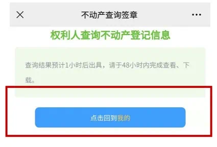 第四步:提交查询申请完成后系统将提示“查询结果预计1小时后出具,请于48小时内完成查看、下载”。