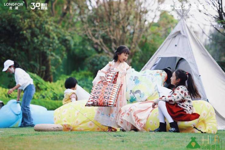 踏入山海营地,在宽敞柔软的草坪上席地而坐,与亲友一起躺进露营帐篷,铺一方漂亮餐垫,迎着山海的清风,无论是带娃遛狗,约会散步,亦或是坐在天幕下,饮茶小酌,随处皆是治愈风景。