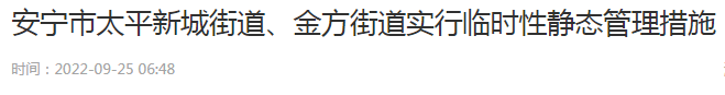 太平新城街道、金方街道实行临时性静态管理