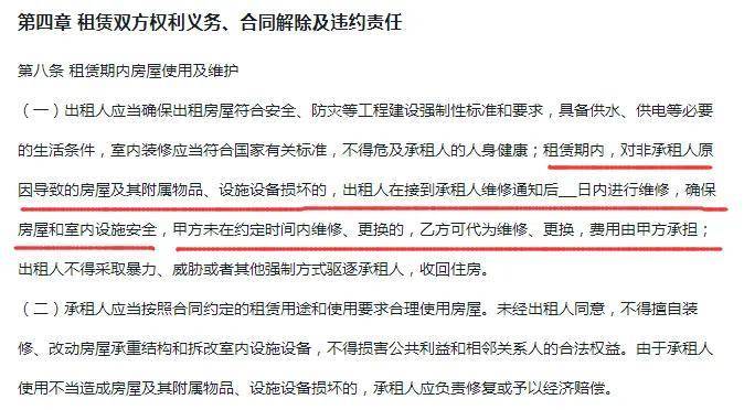 《民法典》第七百一十二条:出租人应当履行租赁物的维修义务,但是当事人另有约定的除外。