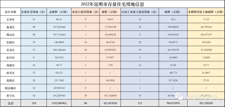 官方公布!2022年昆明市存量住宅用地超1000公顷