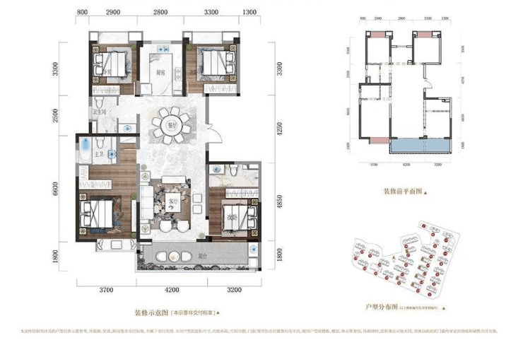 先来看看挂出最多的房源,建面约127㎡,三室。