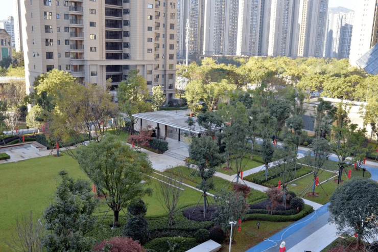 内部有大面积的道路和草坪,这是一种算不上走心的常规做法,乍一看显得有些空,园林景观经过两年的生长,目前植被养护得很不错,但毕竟原本的植物搭配就并不算密,属于只可近看但无法远观。