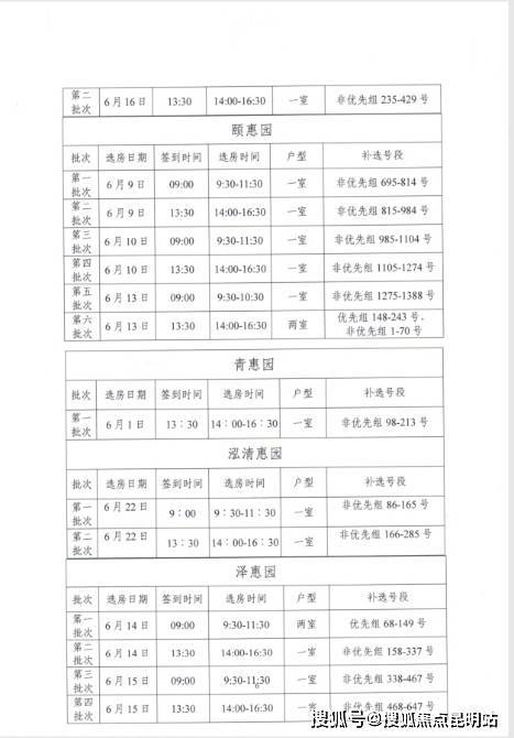 本次参与补选的房源共计2653套。其中,普惠园669套,其中一室户型589套,两室户型80套;吉惠园144套,其中一室户型115套,两室户型29套;颐惠园524套,其中一室户型446套,两室户型78套;泓清惠园92套,均为一室户型;青惠园61套,均为一室户型;盛惠园411套,其中一室户型363套,两室户型48套;俊福花城407套,其中一室户型344套,两室户型63套;铭惠园45套,其中一室户型39套,两室户型6套;泽惠园300套,其中一室户型263套,两室户型37套。