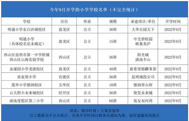 据大象房鉴所不完全统计,确定在今年9月开学的小学共有8所,涵盖昆明西市区、东市区、北市区等多个片区。