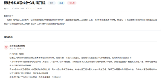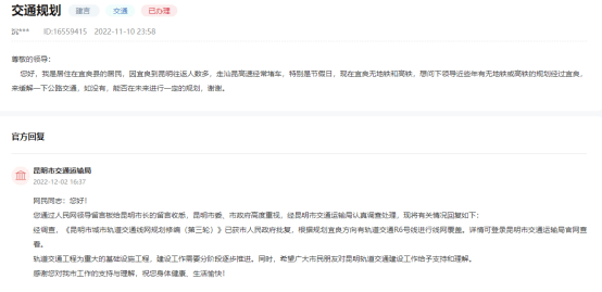 对此,昆明市交通运输局进行了回复。