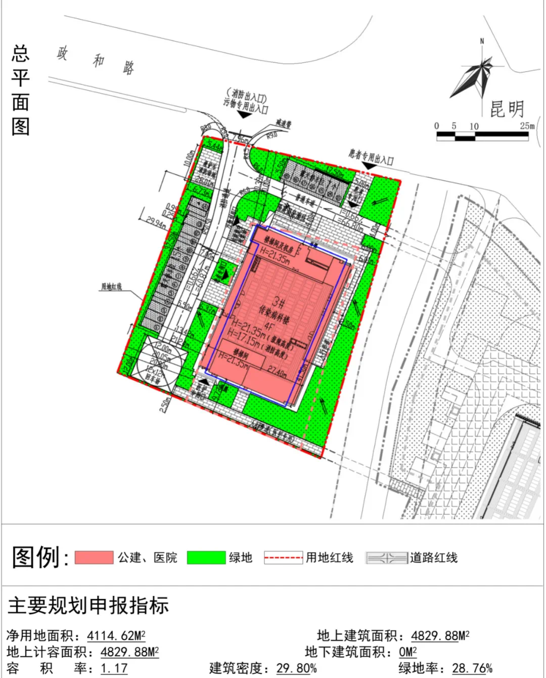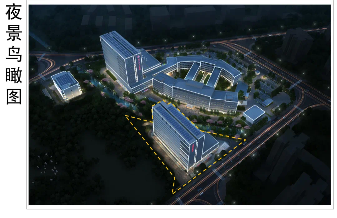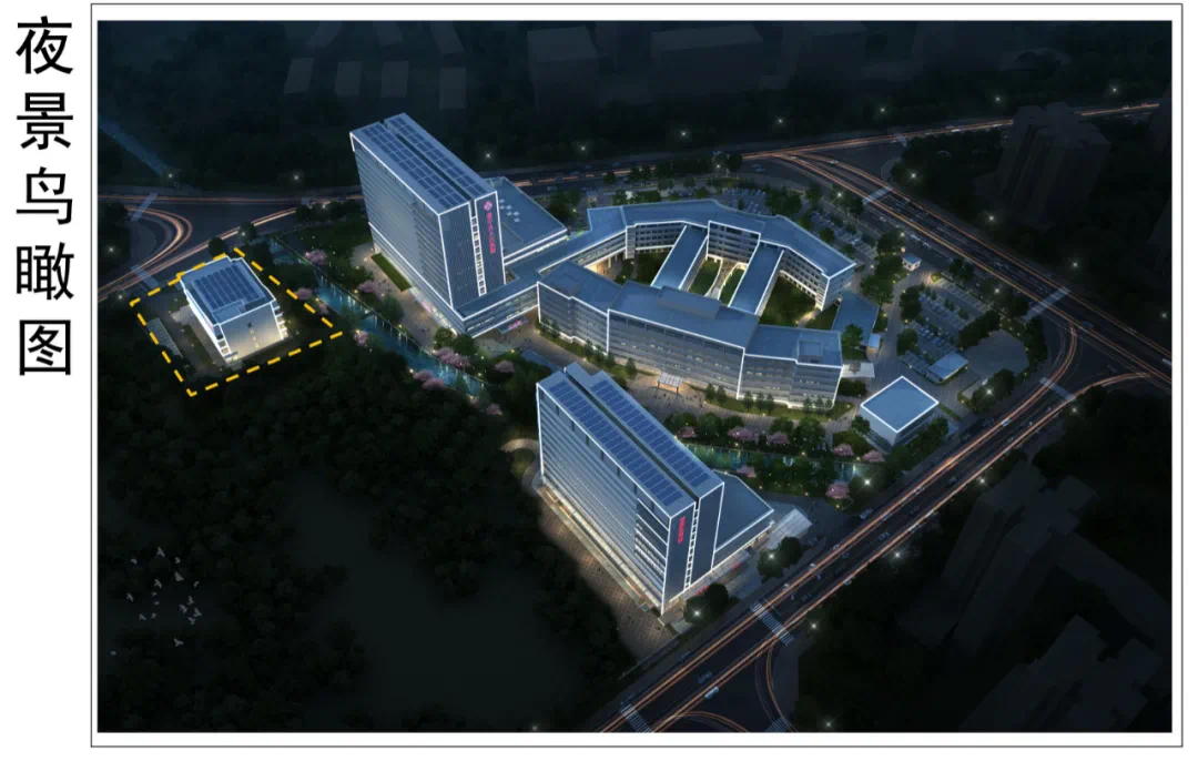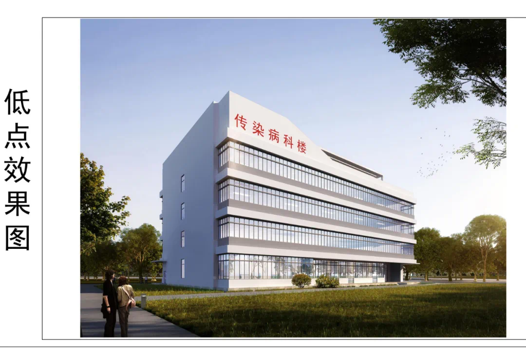地块二规划有1栋后勤服务楼、1栋污水处理站,地上10层,地下3层地块三规划有1栋传染病科楼,地上4层。