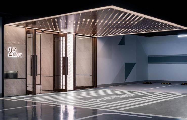 通过色温及光亮的考量,地下光厅采用无主灯照明,科学散发光源,视觉通透卓然,雅致成境。地库内配置导视系统、人车分流设计,护航业主车辆快捷、准确行驶,各行其道,各入其位,致献归家有序的生活格调。