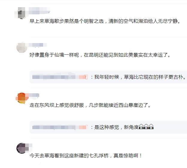 “今天去草海看到这座新建的七孔浮桥,真是惊艳啊!”