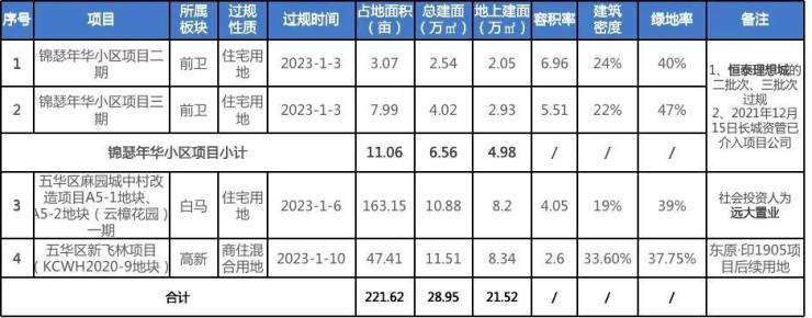 1月3个项目过规,长城资管21年底即介入的恒泰理想城过规4.98万方,远大置业麻园村项目过规8.2万方,新飞林地块东原印1905后续用地过规8.34万方。