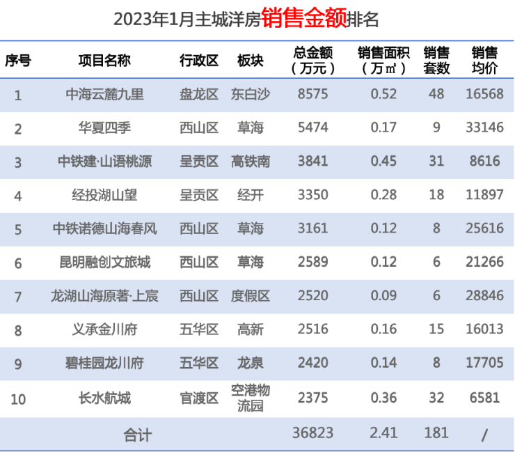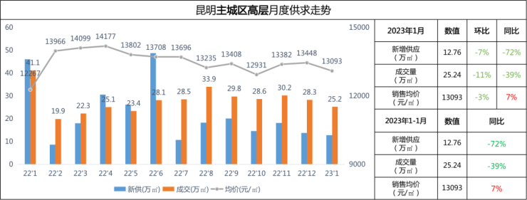 2023年1月昆明楼市:整体表现稳定 春节成交淡季 市场量价微跌