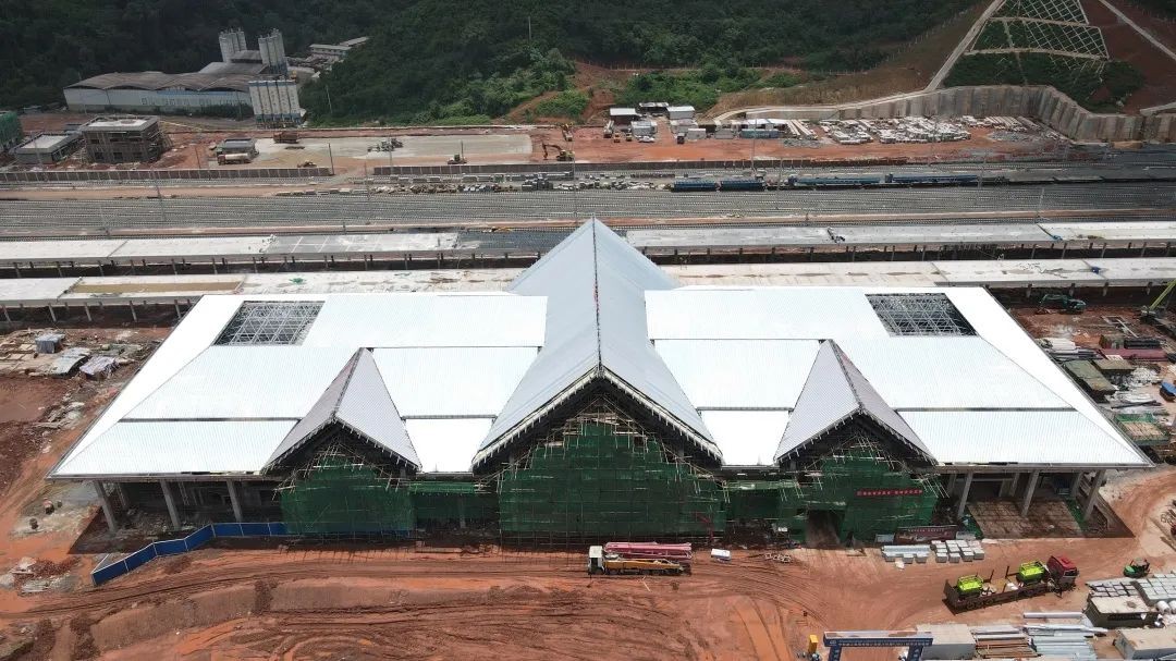 6月15日,中老铁路国门站-磨丁车站金属屋面全面完工,正式进入装饰装修和机电安装施工的新阶段。