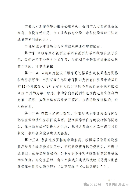申购家庭获得选房资格后,不得中途退出。放弃选房资格的,5年内不得再次申购昆明市配售型保障性住房。