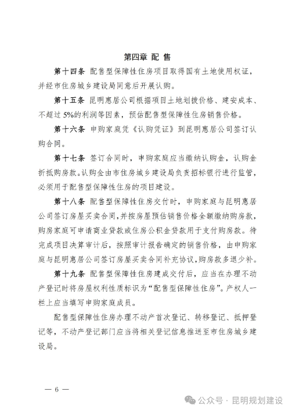 配售型保障性住房以划拨方式供地,将按“保本微利”原则面向昆明市城镇户籍工薪收入群体,城市需要引进的人才等群体配售。
