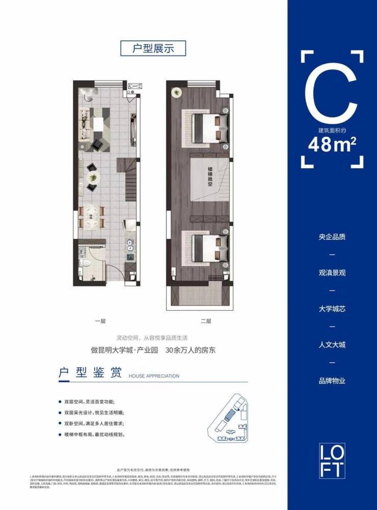 作为片区内重点商业版图,项目定位城市文化综合体,集商业购物、教育配套、星级酒店、精品住宅、社区运动场所于一身,实现多项功能的共融,打造一个开放、交融、健康、前沿的现代化国际人文社区,未来将成为昆明大学城全新生活目的地。