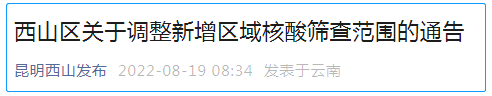 刚刚!西山区发布关于调整新增区域核酸筛查范围的通告
