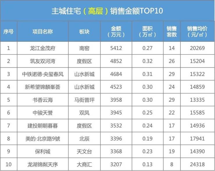 昆明主城住宅成交TOP排行(高层)