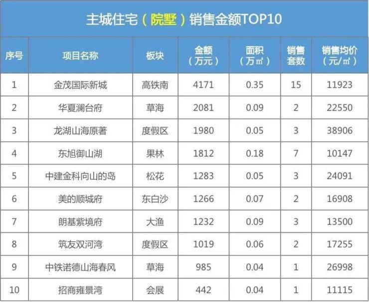 昆明主城住宅成交TOP排行(院墅)
