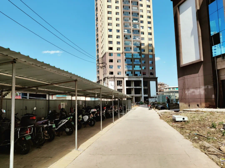 业主徐先生介绍:“我们是2021年8月份住进来的。出于安全考虑,大家筹钱安装了单车棚,每家每户配备2个灭火器。水、电、道路和电梯间的地砖,也都是我们自己筹钱做的。”他表示,已经知道开发商正在重整,“现在就希望赶紧达到交房标准,把房子交给我们业主,让我们正常生活,安全生活。能够办理房产证就更好了。”