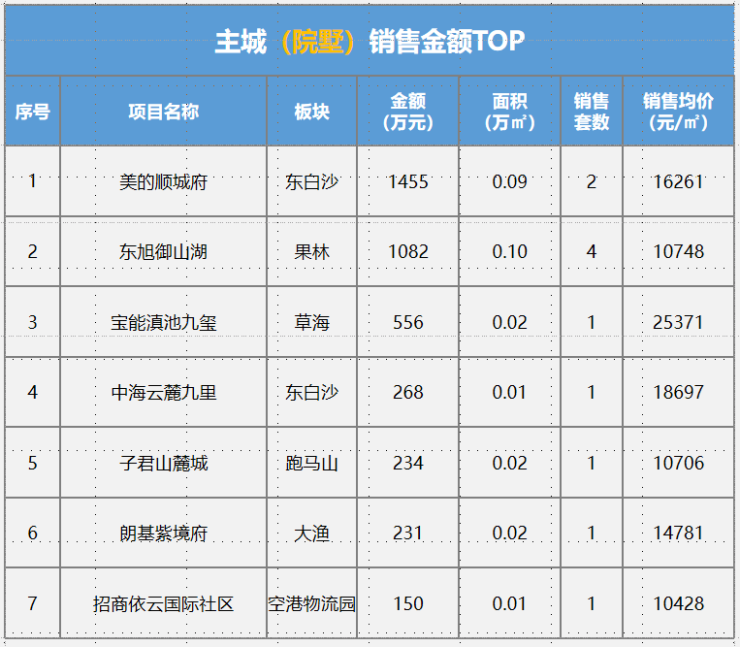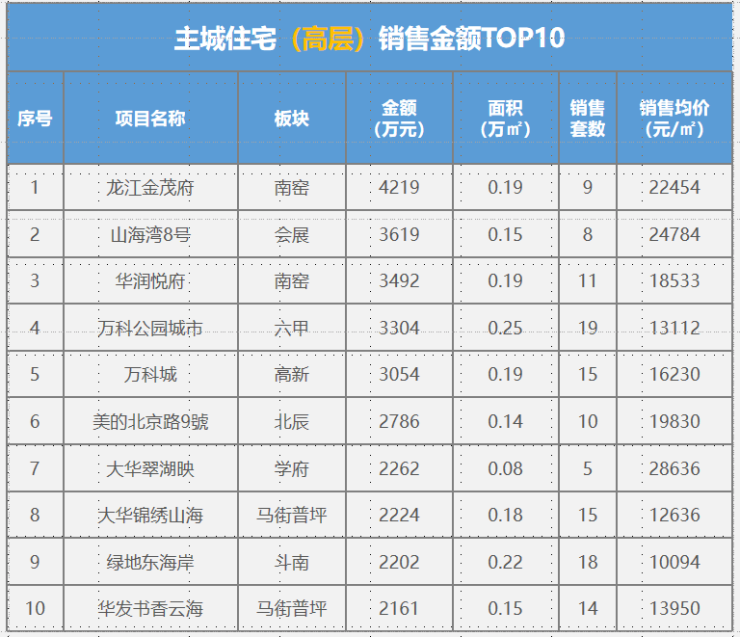 本周住宅成交6.93万㎡,环比下降4%。主力成交项目为万科公园城市19套,0.25万㎡;绿地东海岸18套,0.22万㎡;万科500里16套,0.2万㎡等;