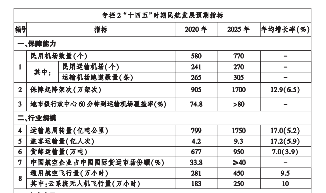 民航局例行发布会上,民航局发展计划司司长韩钧介绍,《规划》预计到2025年,中国民用运输机场数量达到270个以上,比“十三五”末期增加30个以上。运输总周转量将达到1750亿吨公里,旅客运输量达9.3亿人次。