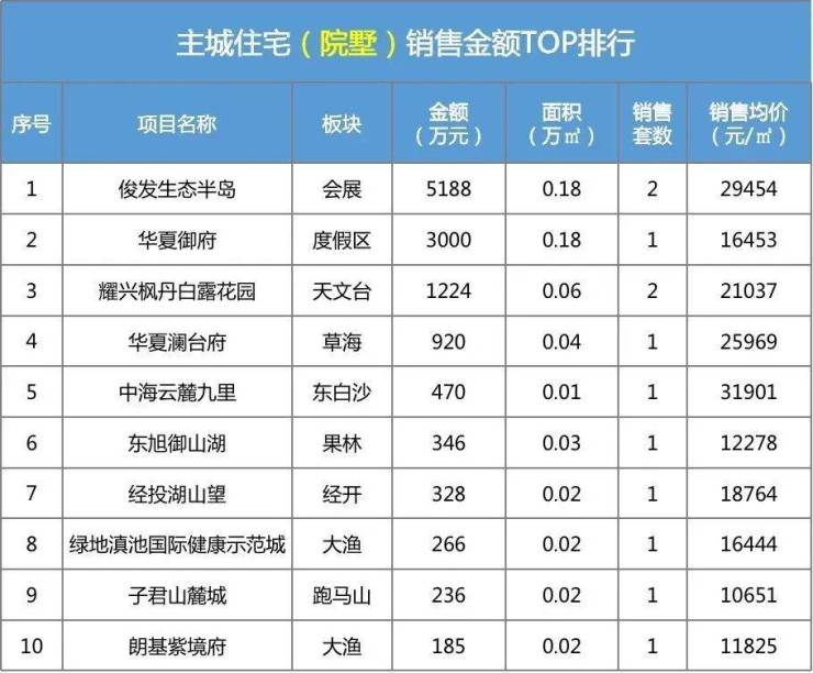 昆明主城住宅成交TOP排行(院墅)