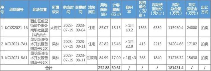 本周昆明主城3宗土地供应公告。