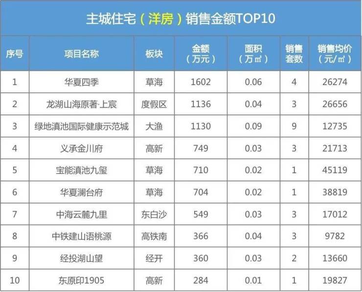 昆明主城住宅成交TOP排行(洋房)