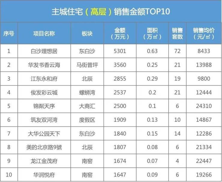 昆明主城住宅成交TOP排行(高层)