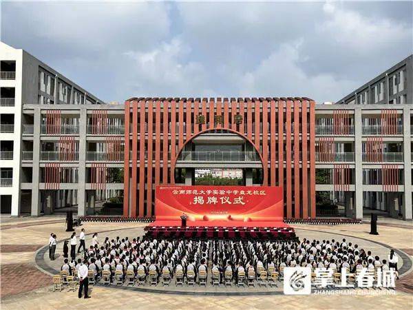 随后,在与会各级领导的共同见证下,云南师范大学党委副书记、校长王德强,盘龙区委副书记、区长高庚等领导共同为学校揭牌。据了解,为进一步深化合作,2023年1月16日,盘龙区人民政府与云南师范大学签订协议,充分发挥云南师范大学办学理念、人才优势以及盘龙区教育资源优势,引进云南师范大学实验中学,从2023年秋季学期开始,在原昆三十四中(原黄冈中学昆明分校)校址举办云南师范大学实验中学盘龙校区,云南师范大学实验中学原有的省属公办性质、管理团队、管理模式不变。新校区占地129.5亩,建筑面积约6.2万平方米,由盘龙区政府于2017年投资4.6亿元,按照一级一等完中的标准倾力打造。校园环境优美,配套设施齐全,是盘龙区硬件设施最好、现代化程度最高的学校之一。