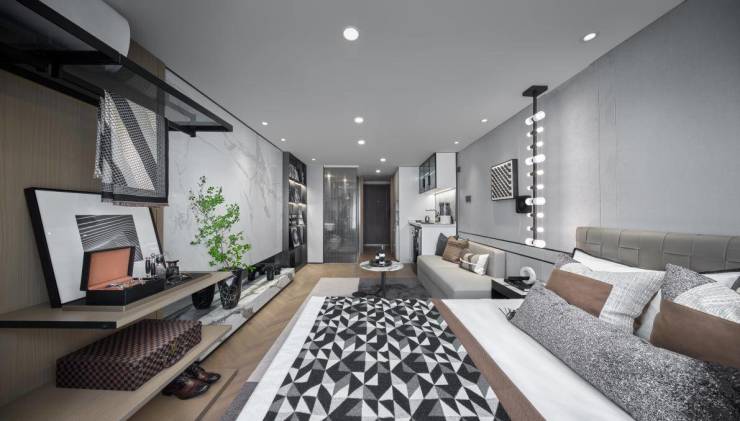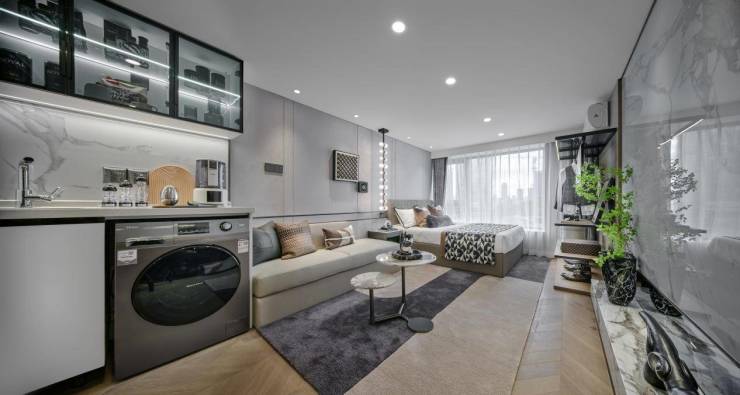 首先动静区分明显,空间层次分明。其次是得房率高,购买一层可得二层空间,既节省了资金,也保证了使用质量。最后是多变灵动的空间,也为后期实用性打下了基础。无论是酒店、创新零售、办公、自住,都有可以施展的空间。