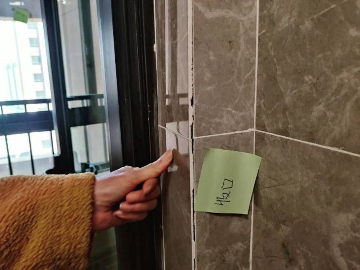 一位尚未接房的业主表示:“已经让开发商的人来看了四五次了,但是一直没来整改。我倒不急着住,如果一直这样,我就不接房。”该业主表示,已经请了专业验房师来验房,屋里存在的问题都用便利贴进行了标记。记者看到,房屋里的柜子上、地板上有很多便利贴,标记了“空鼓”“变形”“收口”“开关无用”等。