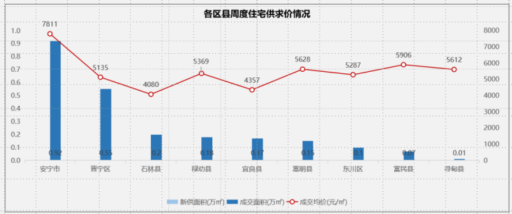热点郊县:安宁主城创佳城项目持续集中备案,本周量价齐跌;太平及晋宁量价齐升;嵩明市场持续低迷。