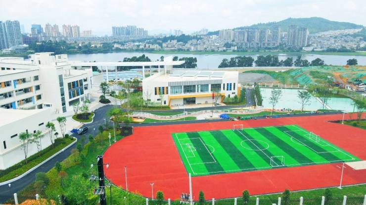 明通小学白沙青池校区作为昆明为数不多的湖畔校园,拥有优越的湖畔生态环境,总建筑面积约2.25万㎡,以36班办学规模进一步发挥明通小学在基础教育领域的引领和辐射作用,提升片区的基础教育品质。