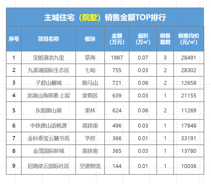 住宅:雍锦园新增供货;主力高层产品减少,住宅整体成交量下降;主力项目多为高性价比刚需项目,住宅均价环比下降。