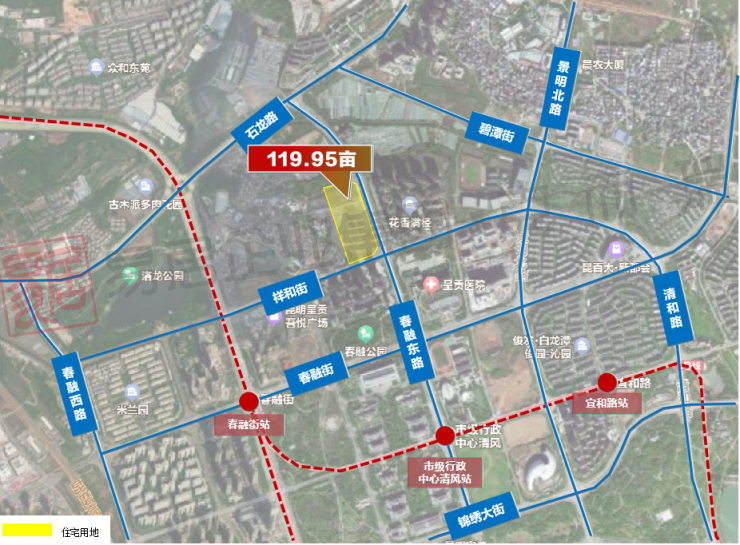 该宗地块占地面积约120亩,容积率3.72,绿地率≥40%,建筑密度≤22%,从位置来看,洛龙村一期位于呈贡核心区,周边有吾悦广场、洛龙公园、云大医院呈贡分院等成熟配套;石龙路、春融街、彩云中路以及地铁1号线等交通网路,居住条件成熟、生活氛围浓厚。