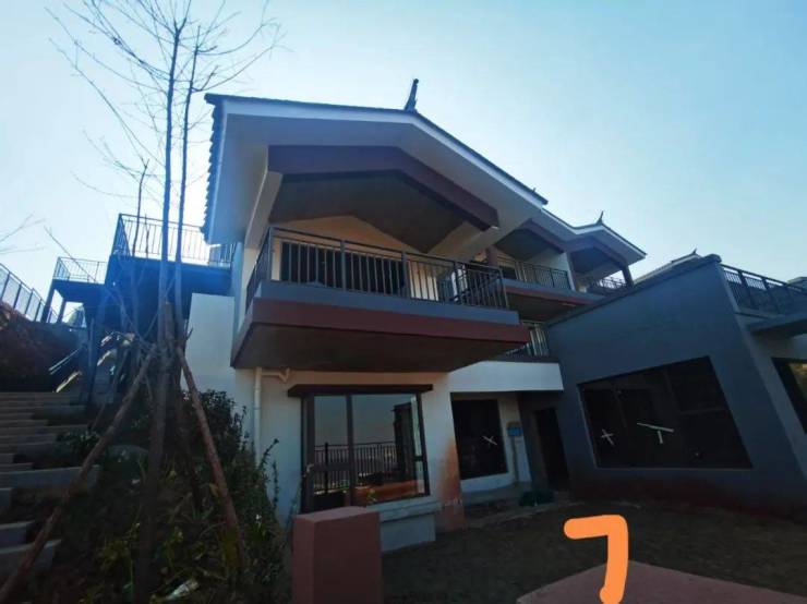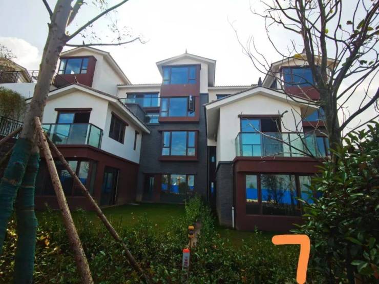 7栋主体封顶完成、砌体完成,内墙抹灰完成,外墙抹灰完成,屋面防水完成,腻子完成100%,露台压顶小青砖完成100%,窗框及固定玻璃安装,钢楼梯安装完成,屋面盖瓦完成,室内二次电管网配管完成,给排水管安装完成,露台栏杆安装完成,涂料完成,外架拆除完成,室外附属工程施工中;