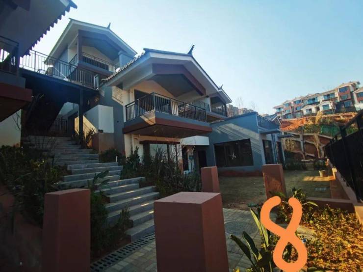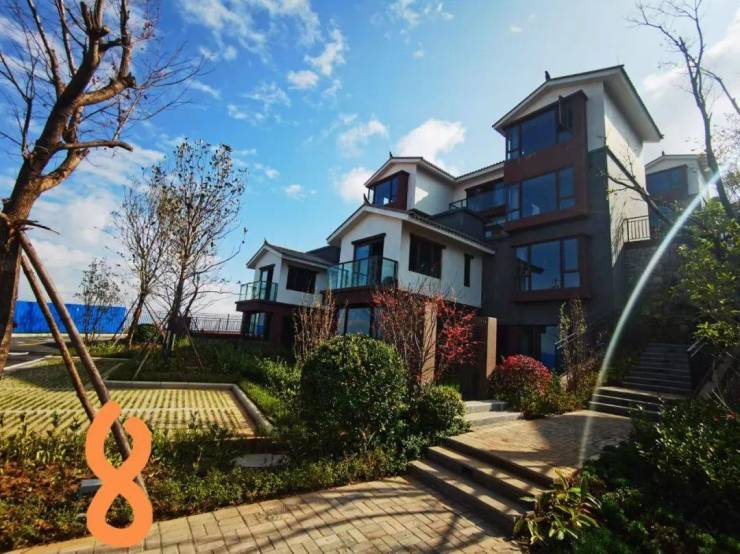 8栋主体封顶完成、砌体完成,内墙抹灰完成,外墙抹灰完成,屋面防水完成,腻子完成100%,露台压顶小青砖完成100%,窗框及固定玻璃安装完成,屋面盖瓦完成,室内二次电管网配管完成,给排水管安装完成,露台栏杆安装完成,涂料完成,外架拆除完成,钢楼梯安装完成,室外附属工程施工中;