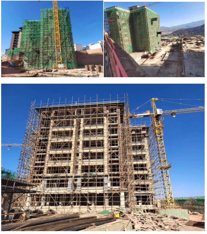 3#楼主体结构完成,砌体完成,内墙抹灰完成80%,外墙抹灰完成;屋面防水完成100%;门窗收口完成;窗安装完成;外墙保温砂浆完成、抗裂砂浆完成,外墙防水腻子完成;脚手架拆除完成