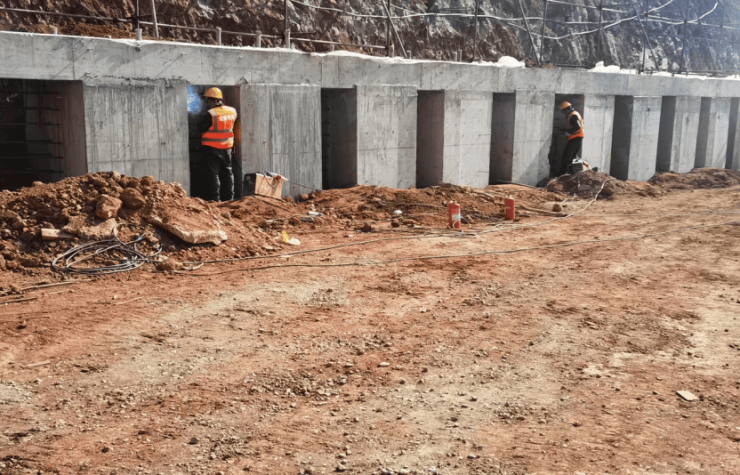 7栋、8栋基础承台、地梁混凝土浇筑完成。正在进行挡土墙钢筋安装绑扎。